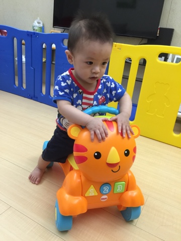 再到嬰兒樓層逛,意外在麗嬰房看到費雪兩用老虎踏步車特價1599元,感覺還不錯,有兩款獅子和老虎,現場沒有現貨要用宅配的,大概週四前可以收到貨,好期待!這台9m就可以玩囉,目前恩恩是10.5m玩起來應該很上手。